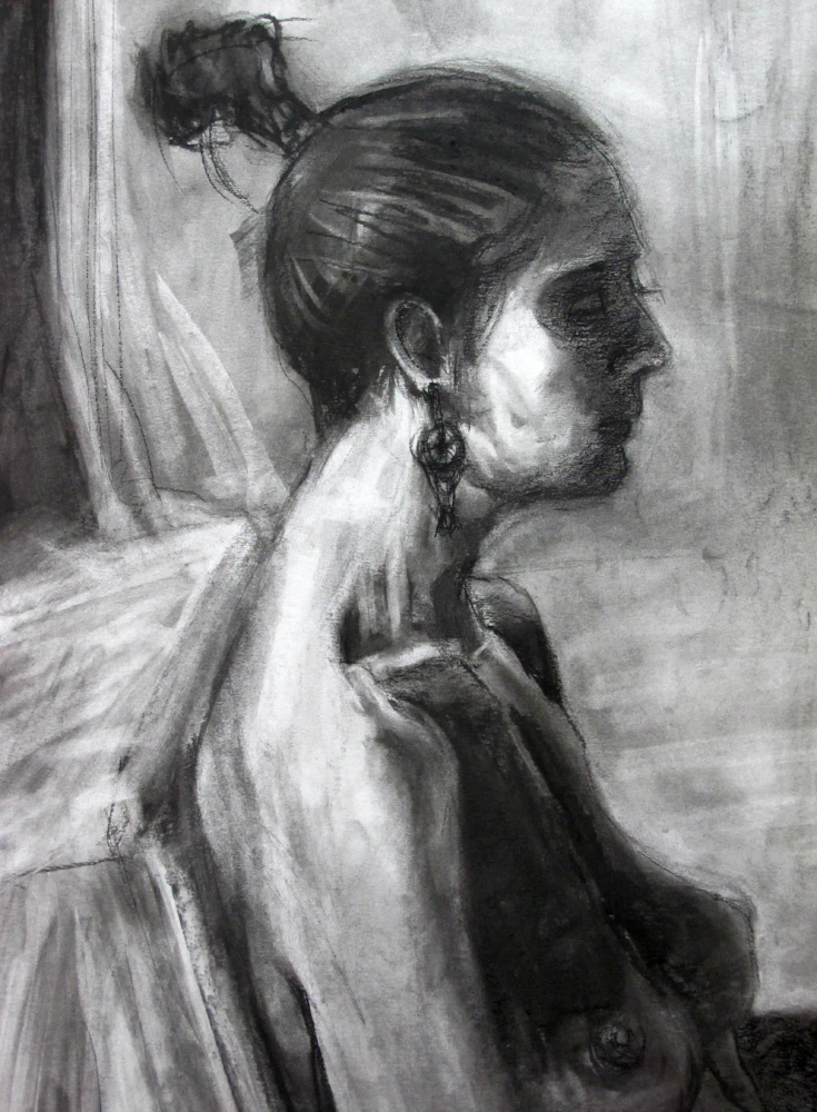 Claudia sitting in a seat ... thoughtful about her future... Drawing , 2016Art Series - From Live Models