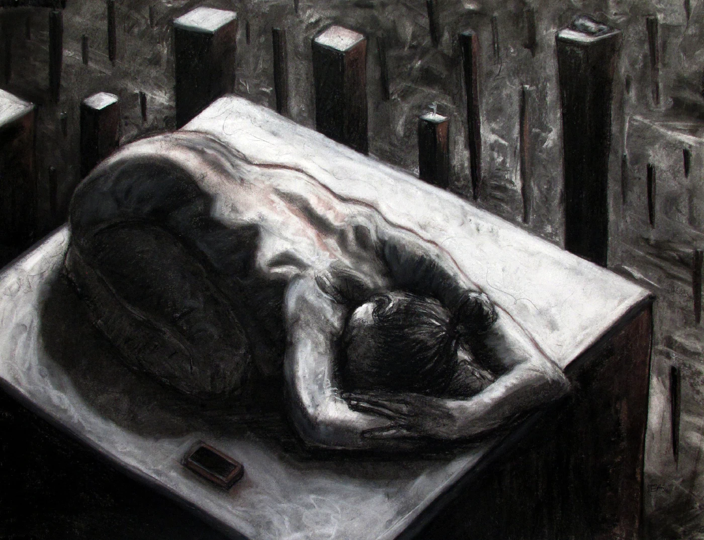 This work reflects the isolation and accompanying loneliness that each of us creates - consciously or not - through the use of ‘smart phones’ and other digital technology.