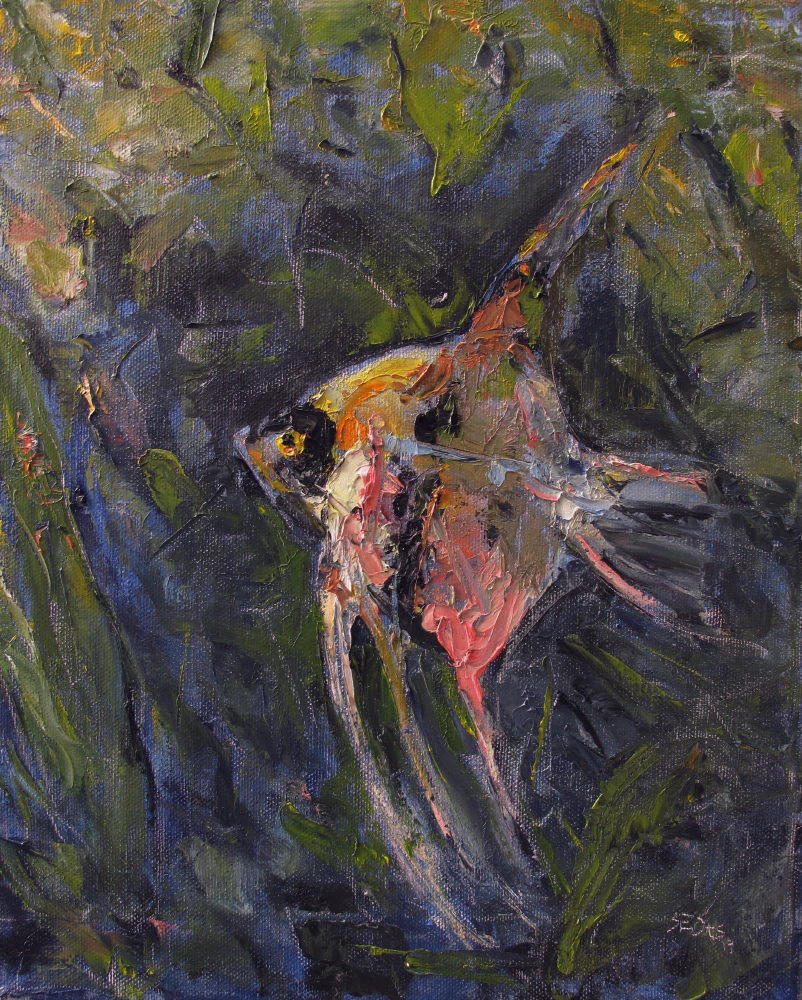 Angelfish are beautiful, big fish which are often hanging still in the water. Their big, slick bodies can easily reflect the light that enters the water from above. This makes them to be a marvelous spectacle, creating a full color palette by combining their own colors, the environment and the light.
